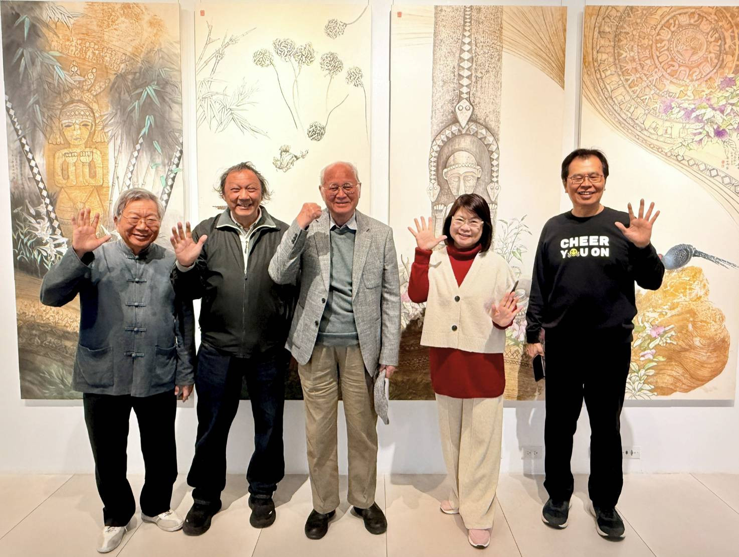 圖說:(左至右)林永發、陳俊卿、廖修平、黃淑卿、莊坤良參觀的教授們