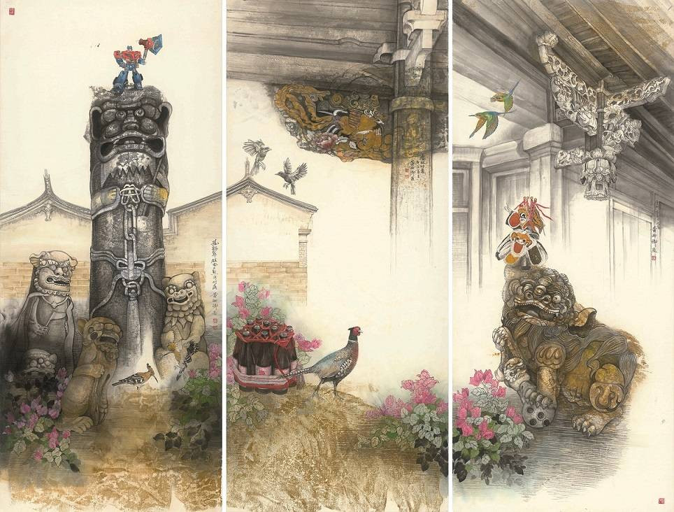 藝術家黃淑卿此次展覽還包括了,描繪異國文化的作品,如「夜鴞鴞」和「在旅行中發現文化」;為題的「浯島三韻」以金門的傳統閩式建築住居和戰地的歷史,融入了作品,展現了藝術家對於文化多樣性的深刻印象。