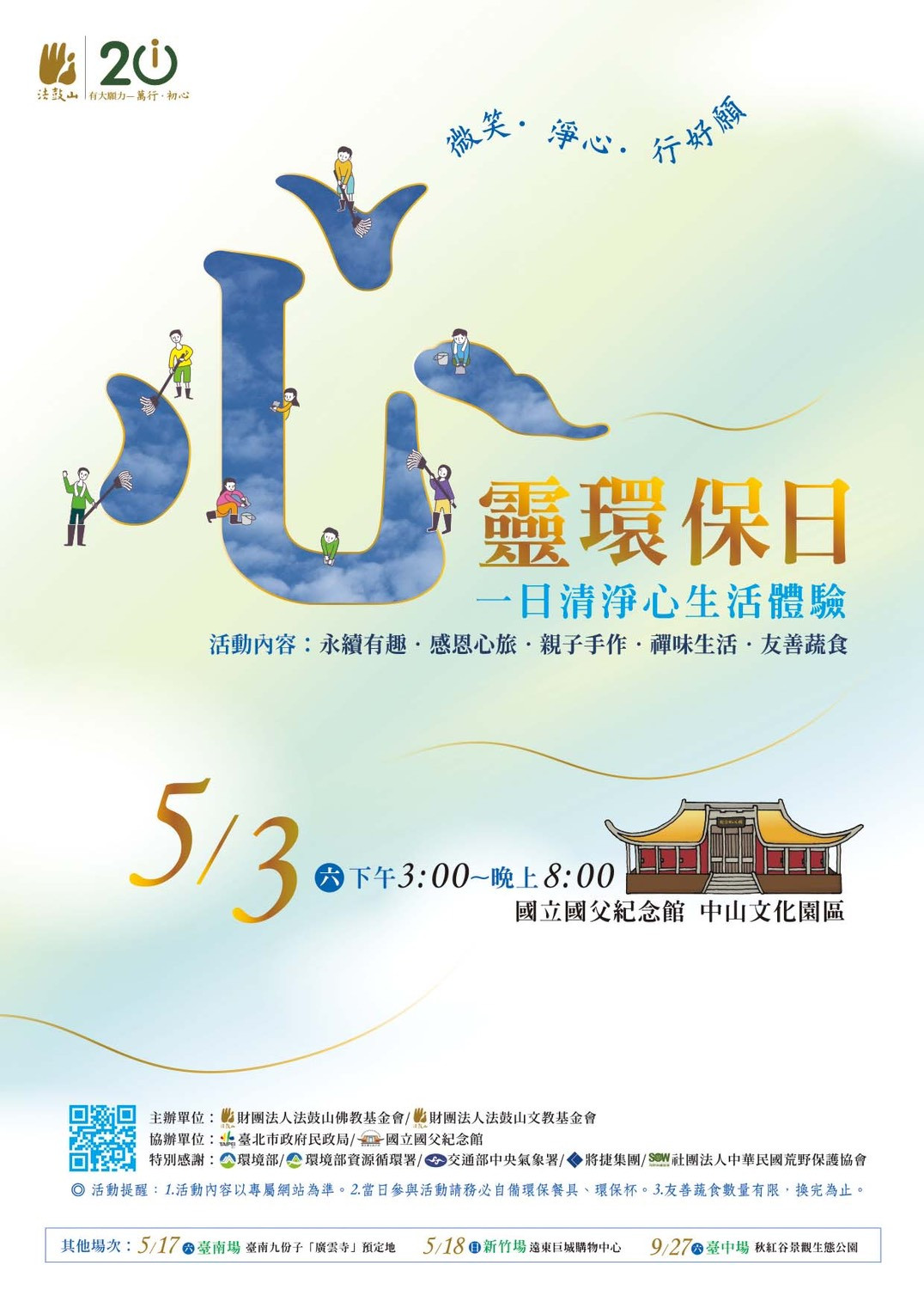 法鼓山「心靈環保日」將於5/3重返國父紀念館,提供大眾康乃馨盆栽結緣,還推出造型可愛的「佛誕鬆餅」,以及數十種美味蔬食,闖關集點就能免費兌換。法鼓山將環保意識、環境教育結合親子手作、禪味遊戲,邀請大、小朋友們共同守護地球;活動從下午3點進行到晚間8點,歡迎民眾闔家共度溫馨的禪悅之夜。