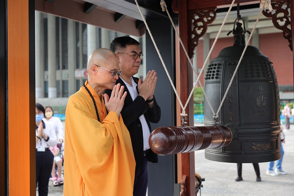 響應心靈環保日 ,環境部部長彭啟明、臺北市府秘書長李泰興、觀光署署長周永暉、資源循環署署長賴瑩瑩、中央氣象署署長呂國臣、北市民政局副局長吳坤宏、國父紀念館館長王蘭生等嘉賓,也應邀與法鼓山方丈和尚果暉法師、護法總會總會長張昌邦,一起和民眾感謝親恩、佛恩、眾生恩,懷著飲水思源的心情浴佛,同時感念大地如母親般養育的恩德,透過撞鐘來為世界祈福。