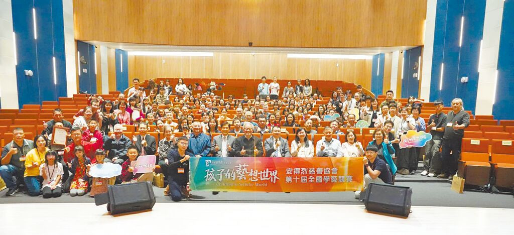 安得烈慈善協會22日舉行第10屆學藝競賽頒獎典禮,所有得獎人合影留念。(安得烈慈善協會提供/呂昭隆台北傳真)