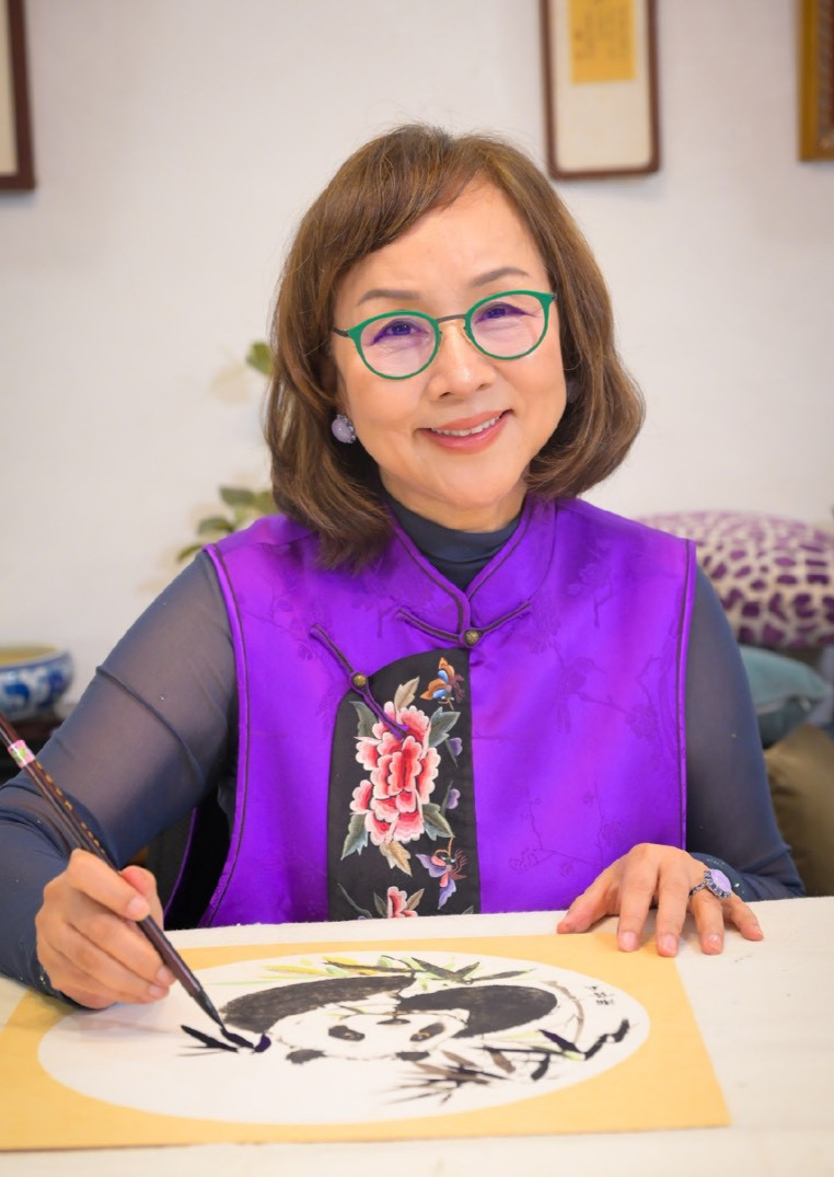 水墨大師黃湘詅創作親筆揮毫,熊貓意象躍然紙上,融合家學底蘊與當代美感的藝術風格。(圖片提供/白雲堂藝術研究會)