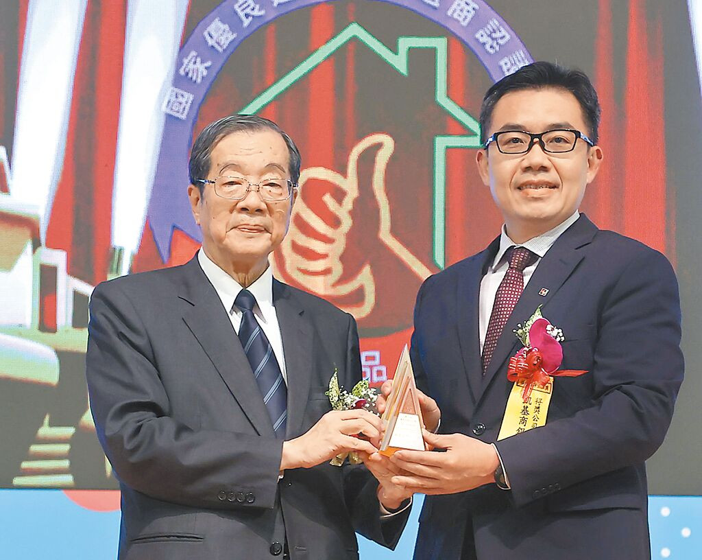 凱基銀行25日勇奪國家品牌玉山獎「最佳產品類」全國首獎 ,考試院長黃榮村(左)頒獎予凱基銀行個人金融總處副總經理張焜泰。(凱基提供/黃琮淵台北傳真)
