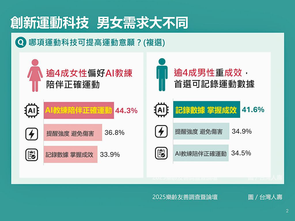 台灣人壽樂齡友善調查結果發現,AI教練有助提升女性運動意願。(台灣人壽提供)