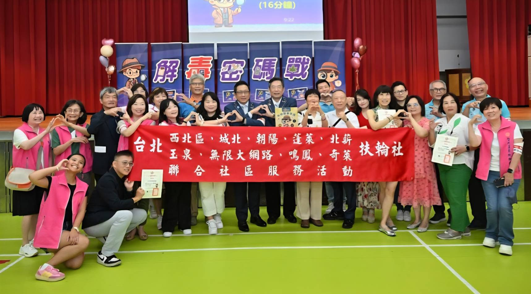 台北蓬萊扶輪社自去年起支持此反毒教育計畫,今年更成功凝聚分區社友力量,攜手為孩子打造更安全的生活環境,實踐扶輪社關懷兒少的使命。活動於 8 月 9 日(六)在台北市中山國小舉行,吸引約 130 位國小生參加。現場設置多項互動闖關,包括看圖解謎、拼圖找不同、物品辨識及症狀模擬等,讓孩子在遊戲中學會辨識毒品偽裝、理解危害並練習拒絕技巧。家長亦可參觀反毒資訊專區,獲取更多防護知識,強化家庭與學校的防毒合作。