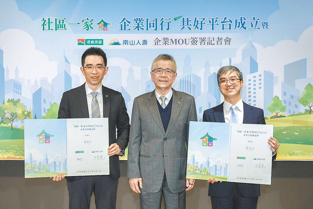 「社區一家」再進化!信義房屋9日宣布啟動「社區一家,企業同行」共好平台,透過制度化媒合機制,串聯企業資源投入在地社區行動,協助企業以長期、可持續的方式關注社會議題,成為企業實踐ESG的行動入口。平台今年將擴大邀請各方企業共襄盛舉,共同擴大永續影響力,南山人壽為首家響應企業,昨日完成合作備忘錄(MOU)簽署,首案鎖定台中和平區的伯拉罕共生照顧勞動合作社。