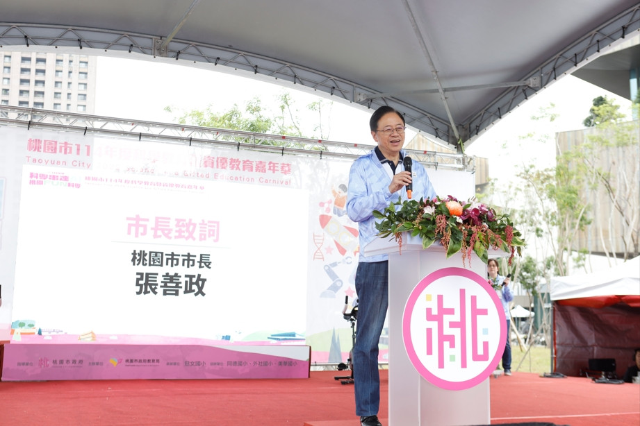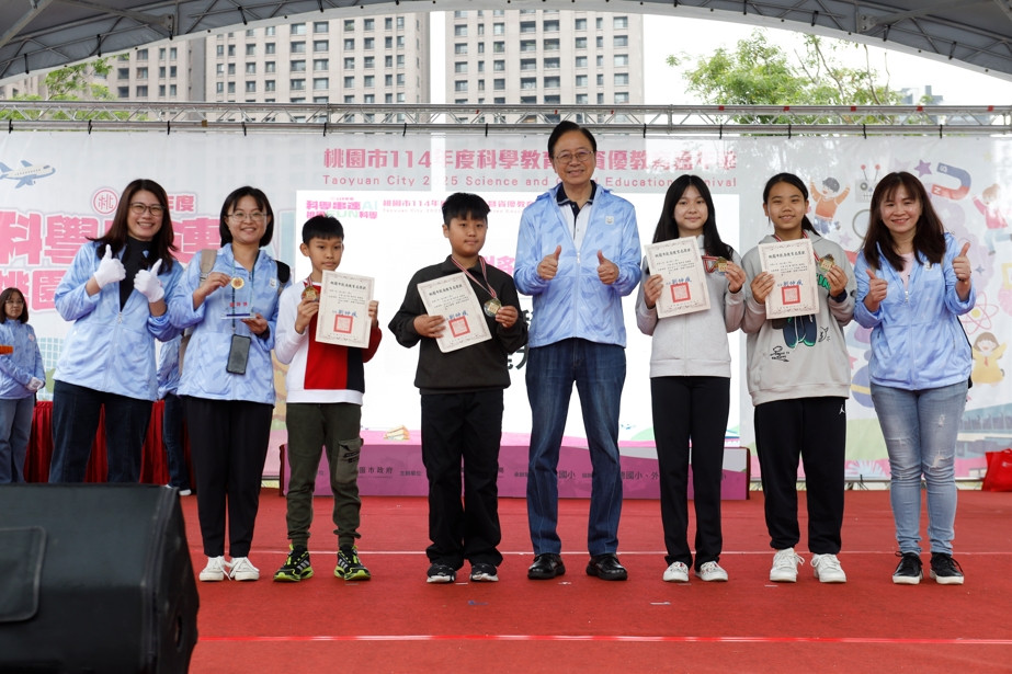 桃園市市長張善政更親臨現場,表揚本市文昌國中學生蕭睿希參加2025年「第22屆國際國中科學奧林匹亞競賽(IJSO)」榮獲金牌獎的佳績,以及參與本市水火箭比賽及國小科學基本能力競賽的獲獎團隊,勉勵師生在實作與挑戰中持續精進。期盼透過科學教育的扎根,引導孩子掌握未來科技趨勢,培養能與世界接軌的能力,以科技改善生活、以創新擘劃未來,而今日嘉年華正是本市人才培育與教育能量的重要展現。