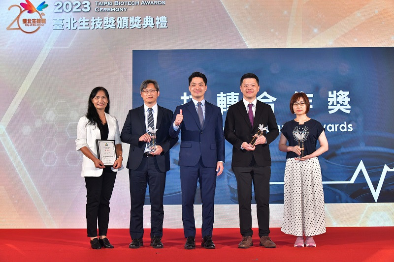 生技產業奧斯卡級榮耀「2023臺北生技獎」今(9/15)由蔣萬安市長親自揭曉「創新技術獎」、「國際躍進獎」、「技轉合作獎」及「跨域卓越獎」四大獎項得主,共計20家績優生技企業與學研機構獲獎,頒發總獎金600萬元。