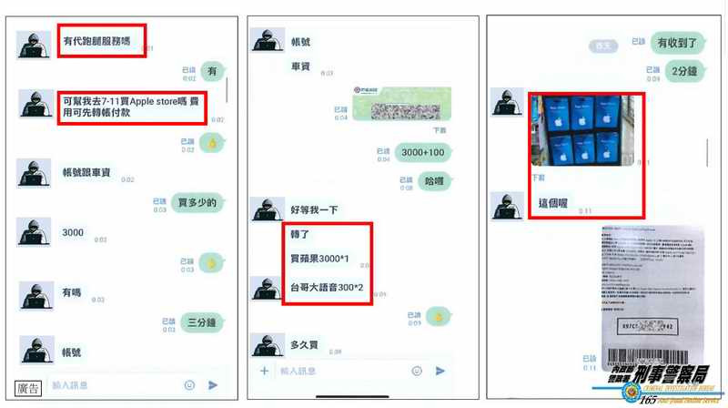 多元化計程車蓬勃發展,除為民眾提供交通代步服務外,也推出許多便民服務,諸如快遞包裹、代購商品等,但代購商品服務卻被詐騙集團盯上,被利用來洗錢及詐財。近期有位蔣姓多元化計程車司機,在多元化計程車官方LINE帳號接獲1名客戶訊息,要求司機到便利商店代為購買APPLE STORE的點數卡及台灣大哥大語音儲值卡,並表示費用可以先轉帳給被害人,雙方也談好代購跑腿費用為新臺幣(下同)100元,被害司機不疑有他,在接收詐騙集團訂單和匯款後,隨即至便利商店購買價值3,000元的APPLE STORE點數卡以及2張300元的台灣大哥大語音儲值卡,並將點數序號拍照傳給詐騙歹徒。隨後蔣姓司機與同事聊天,才得知同事也接收到相同訂單,且其帳戶已遭通報警示帳戶凍結,被害人才驚覺遭不法分子利用為洗錢帳戶。