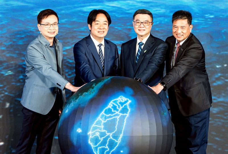 COMPUTEX 2025由外貿協會董事長黃志芳(左起)、總統賴清德、行政院長卓榮泰、台北市電腦公會理事長彭双浪揭開序幕。