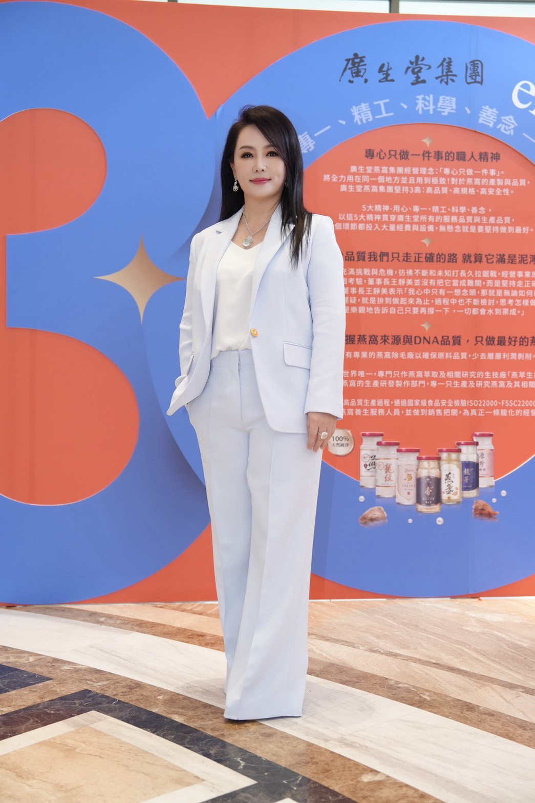 廣生堂及力量國際董事長王靜美女士,喜迎集團30週年慶。(圖/廣生堂集團提供)