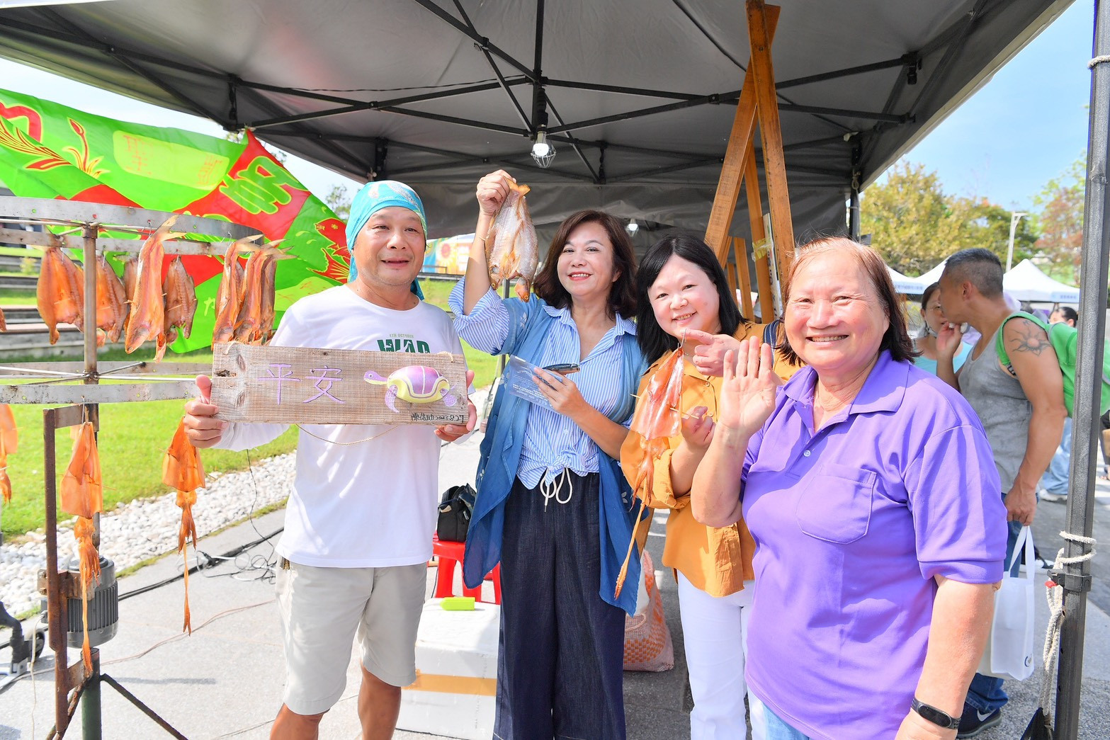 基隆市政府邱佩琳副市長(左二)、產業發展處蔡馥嚀處長(左三)與活動攤商漁娘船情工作室合影
