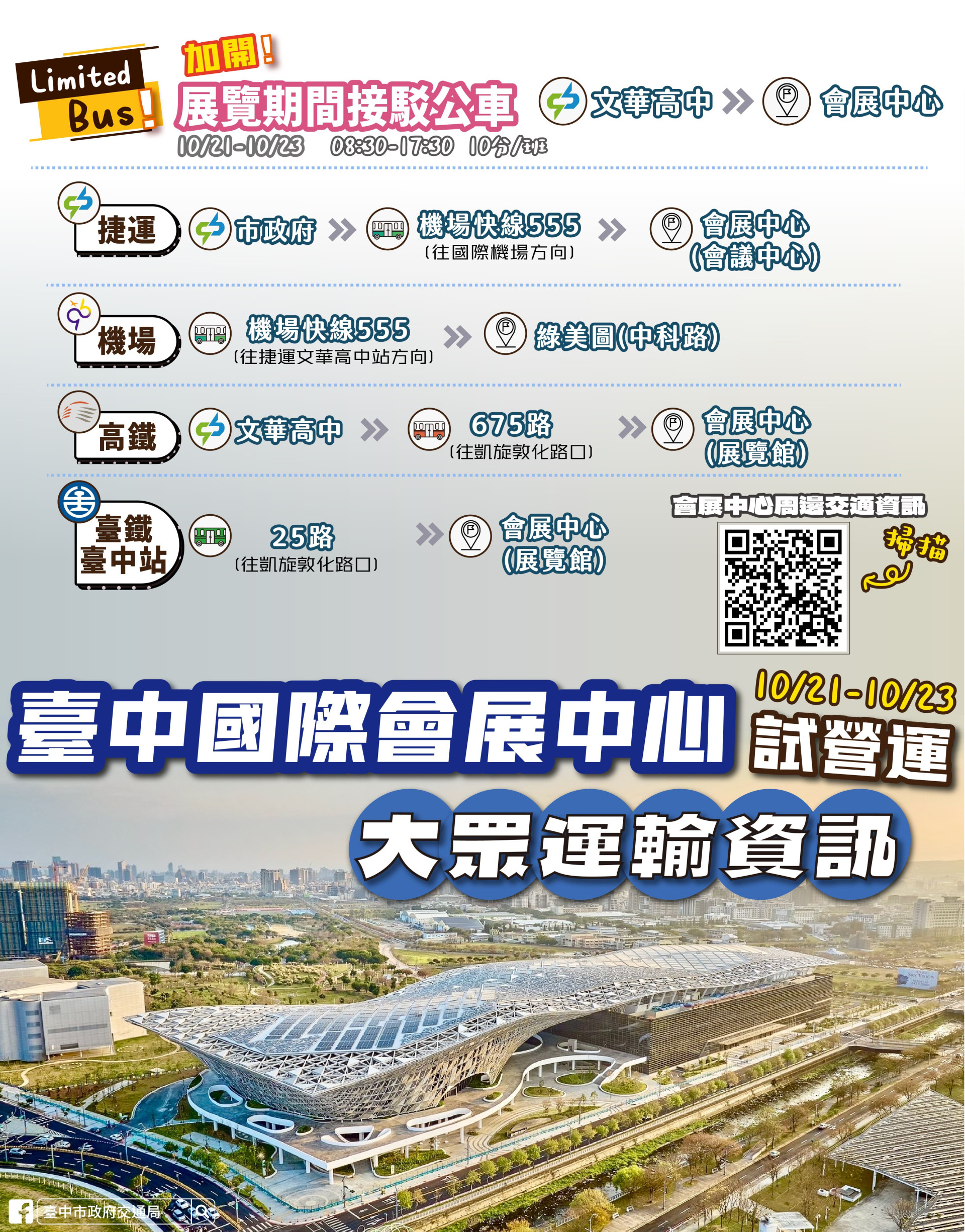 台中國際會展中心試營運展覽期間大眾運輸資訊。(圖/台中市政府提供)