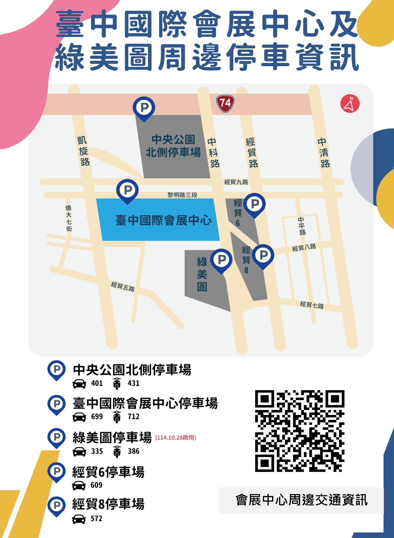 台中國際會展中心試營運展覽期間周邊停車資訊。(圖/台中市政府)