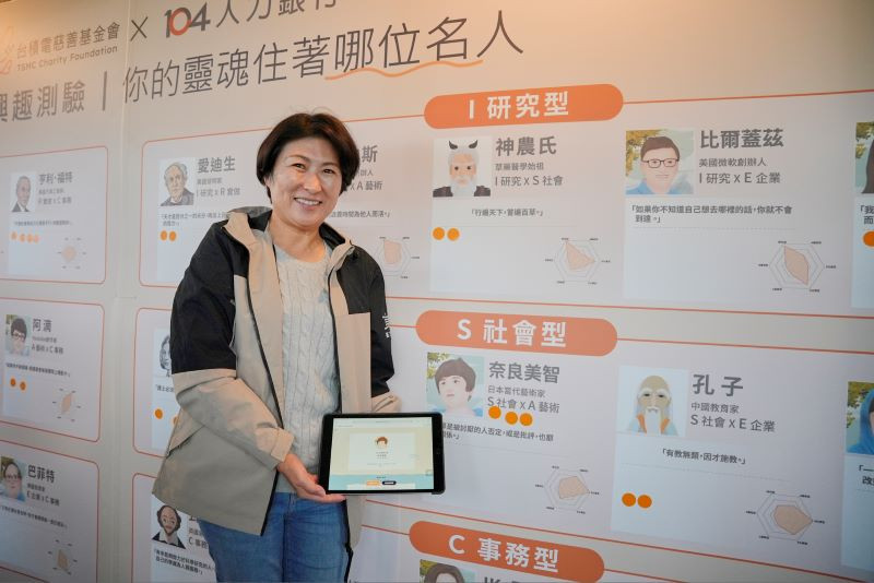 台東縣饒慶鈴縣長鼓勵台東的孩子透過簡易有趣的「生涯興趣測驗」找出個人何倫碼、配對性格相近的名人,透過專家諮詢達到適性揚才。(台積電慈善基金會 提供)