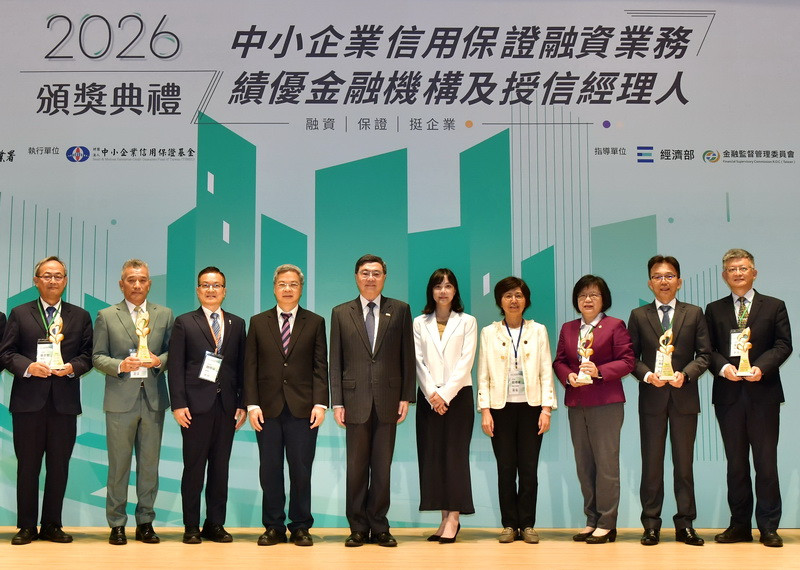 經濟部與金融監督管理委員會於3月16日舉辦「2026年中小企業信用保證融資業務績優金融機構及授信經理人頒獎典禮」,表揚積極運用信用保證機制、協助中小企業取得資金之金融機構與授信人員。
