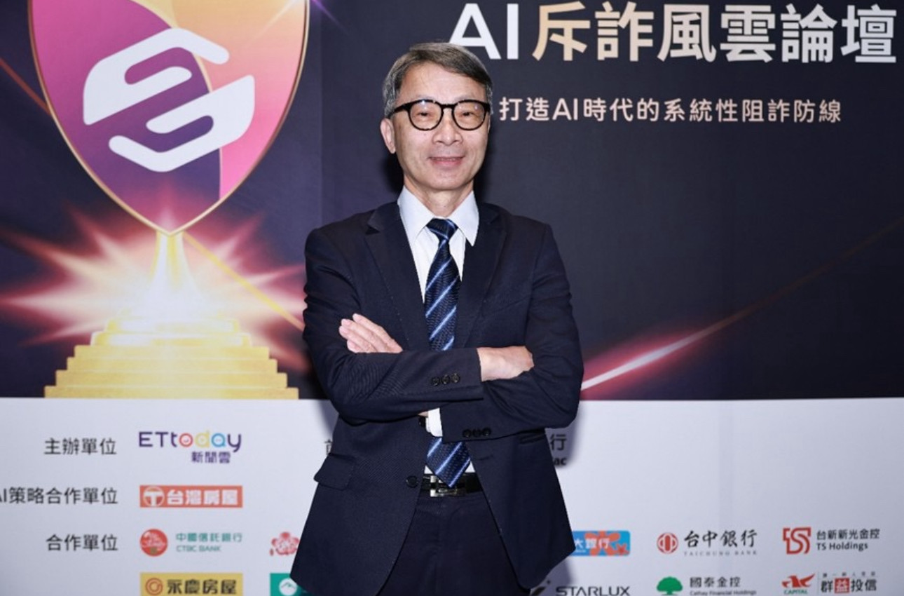 台中銀行副總經理林劍洪日前出席「2026 AI斥詐風雲論壇」表示,詐騙集團利用AI技術翻新犯罪手段,這是一場科技對抗科技的關鍵戰役。「銀行端作為守護資產的正方,必須發揮更強大的AI能量來防止技術遭誤用!」(台中銀行提供)