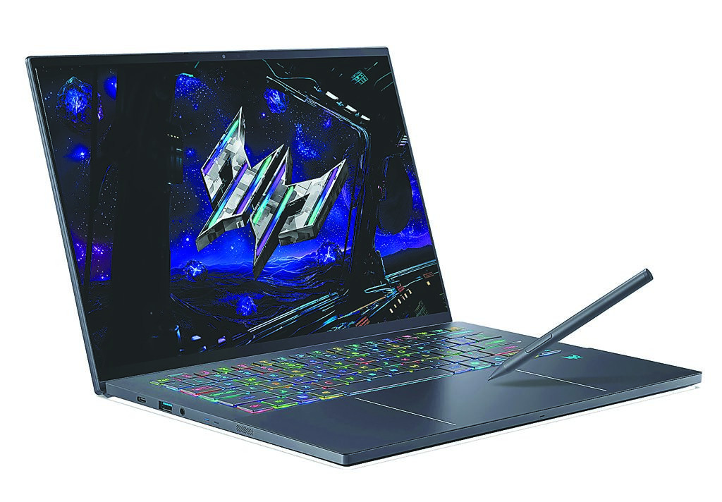 Acer 14.5 吋高效能便攜AI筆記型電腦Predator Triton 14 AI,隨附的主動式觸控筆提供4096階壓力感應,建議售價約6萬元起,預計8月開賣。(Acer提供)