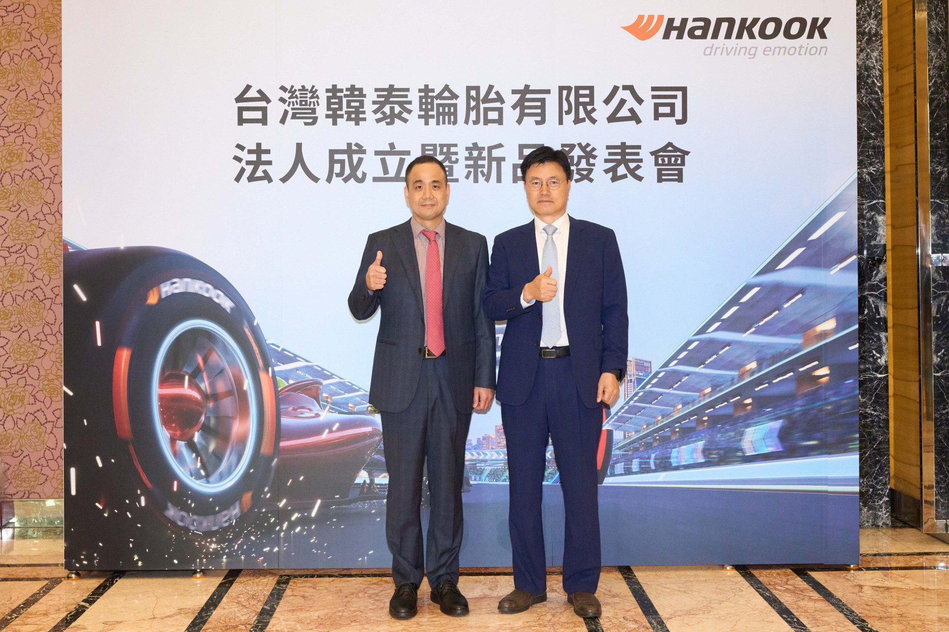 (圖右起)韓泰輪胎 亞太區負責人Mr. JUNG Young、韓泰輪胎 台灣有限公司總經理 徐勝起,致力給台灣消費者最好的輪胎。