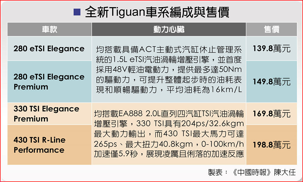 全新Tiguan車系編成與售價