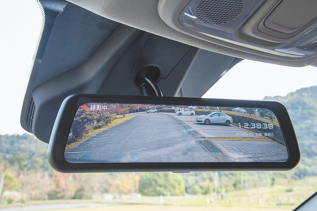 電子後視鏡提供清晰的車尾影像。(陳大任攝)