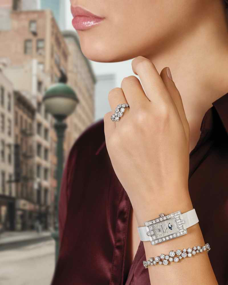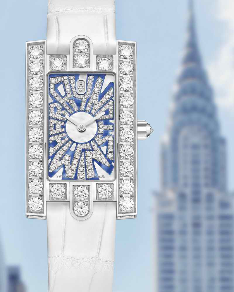第五大道Avenue腕錶錶盤周圍簇擁鑲嵌著華麗鑽石,中間宛如空白畫布,得以讓海瑞溫斯頓的設計師和寶石鑲嵌大師肆意揮灑創意。整個系列的設計靈感來源於1930年代的紐約,錶盤內有橢圓形、圓形、八邊型等幾何圖形。這一系列腕錶作品亦同時致敬了海瑞溫斯頓永遠的靈感繆斯——大自然。曼妙的花朵造型和對天空景色的非凡描繪以精湛工藝呈現在精心設計的錶盤之上。最新推出的Classic Graffiti腕錶,充滿時尚的現代風格,在這一系列中獨樹一幟。作為紐約New  York頂級珠寶系列的作品,這款腕錶以一種全新的獨特樣貌詮釋的大都市的風貌。