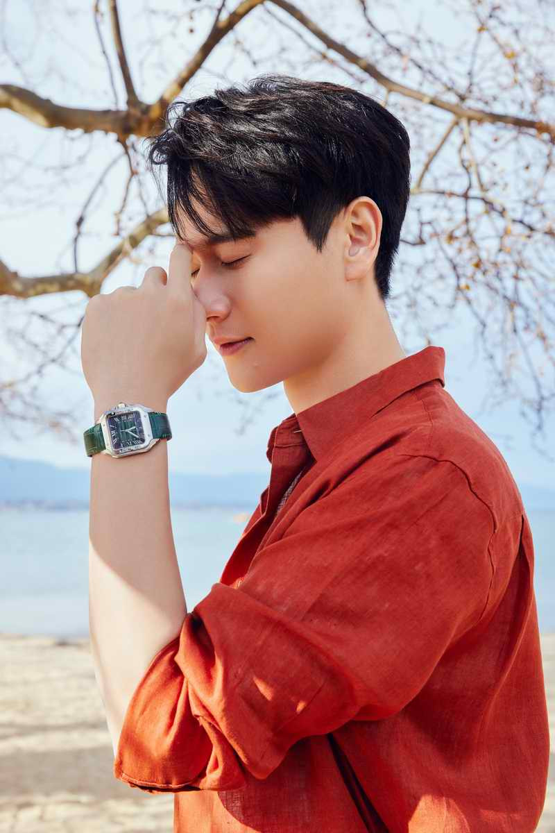 品牌好友-劉冠廷佩戴Santos de Cartier綠面精鋼腕錶