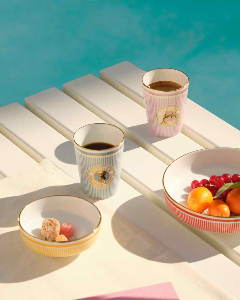 藍綠色和珊瑚紅:這兩種清新明亮的色彩常用於卡地亞珠寶作品之中,為精緻考究的沙灘浴巾、棉質靠墊和珍貴瓷器作品設定基調。這些全新擺件均點綴矚目的熱帶植物圖案,邀請美洲豹加入這趟夏日旅程。卡地亞標誌性美洲豹徜徉其間,盡顯一眼可辨的威嚴姿態。