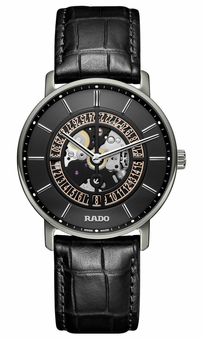 Rado瑞士雷達表全新DiaMaster Thinline鑽霸系列腕錶,以Ceramos™金屬陶瓷材質的錶殼結合黑色鏤空錶盤與環形日期盤,這一創新材質應用是Rado瑞士雷達表在材質科技領域的重要里程碑之一,經過20餘年的精湛研發,品牌已成功實現高科技陶瓷與金屬的完美結合。Ceramos™金屬陶瓷是由90%高科技陶瓷和10%金屬複合物組成,通過高壓注入精密模具並經過高溫燒結,最終達成了高達1300維氏硬度,這樣的結合使Ceramos™金屬陶瓷成為一種超強耐磨的材質,有效解決了高級腕錶金屬表面容易出現的刮傷和劃痕問題。此款腕錶搭載卓越的R766 型機芯,提供72小時充足的動力儲存,同時提供雙面防反光盒形藍寶石水晶錶鏡的堅實保護。底蓋採用鈦金屬錶殼,刻有「LIMITED EDITION ONE OUT OF 388」限量字樣。錶款配備黑色皮革錶帶,採用鈦金屬伸縮折疊錶扣予以固定。