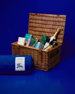 靈感的哈洛德禮籃,其中包含一條限量版的騎士藍野餐毯。