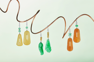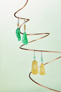 此系列翡翠造型耳環,色彩鮮亮,設計時尚新穎,適合搭配任何穿搭或髮型,可配戴一對,也可單一配戴,垂墜造型,在春風中搖擺,美得青春,美得優雅,時光也因此有了難忘的燦爛。