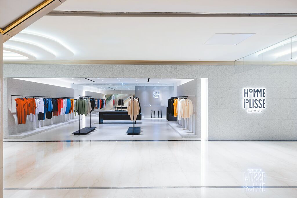 全新開幕的HOMME PLISSE ISSEY MIYAKE店裝融入了大量花崗岩材質。(君梵提供)