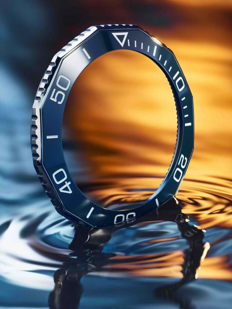 腕錶配備標誌性的 12 刻面陶瓷錶圈,使其能輕鬆轉動,夜光指針則能確保在任何深度都能精準讀時,保證在所有環境條件下都可靠無比。