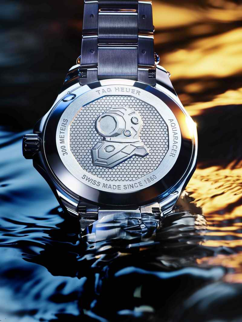 底蓋鐫刻彰顯TAG Heuer泰格豪雅致力追求工藝與探險的潛水頭盔圖案。