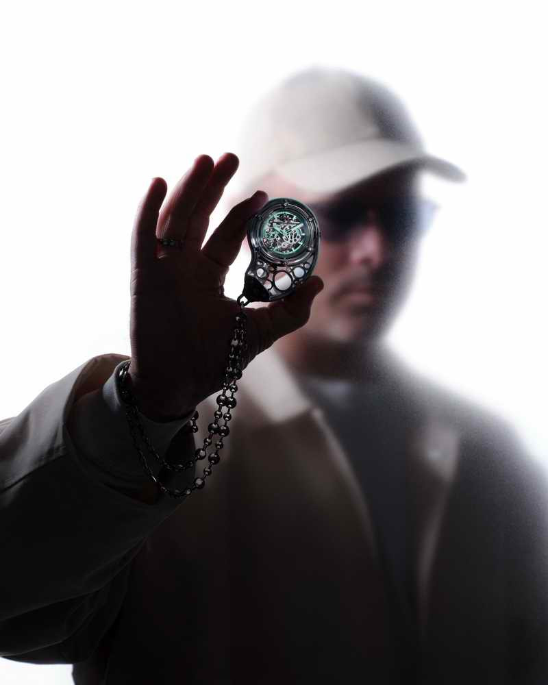 宇舶大使及當代藝術家Daniel Arsham表示「Arsham Droplet鈦晶懷錶是真正展現合作力量的傑作。結合宇舶的卓越技術專長與我的獨特藝術美學,我們打造了一款超越傳統懷錶界限的作品,這款時計融合了過去、現在和未來,彷彿在時間長河中綻放的藝術珍品。」