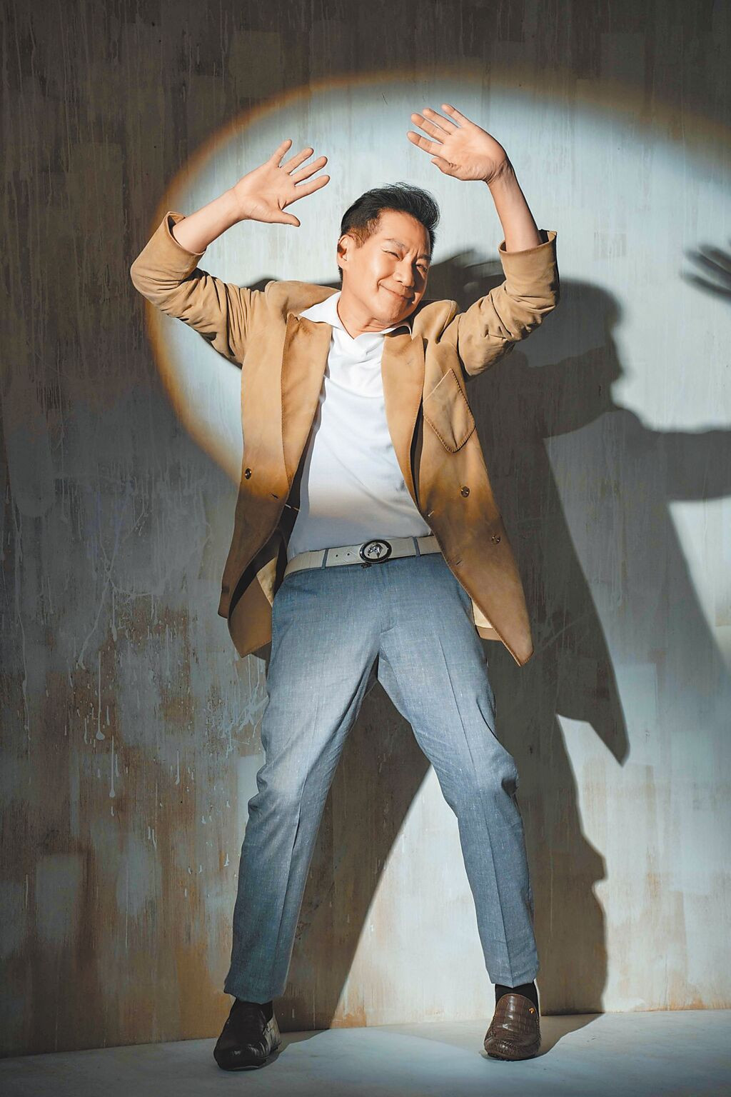 文章穿上Stefano Ricci雙排扣外套,直言思緒有回到90年代的感覺。Stefano Ricci飛燕領絲棉Polo衫3萬6000元,小羊皮雙排扣外套22萬9000元,灰色休閒西褲3萬4000元,鱷魚皮樂福鞋13萬9000元,珠光白色鱷魚皮腰帶10萬9000元。(石智中攝)