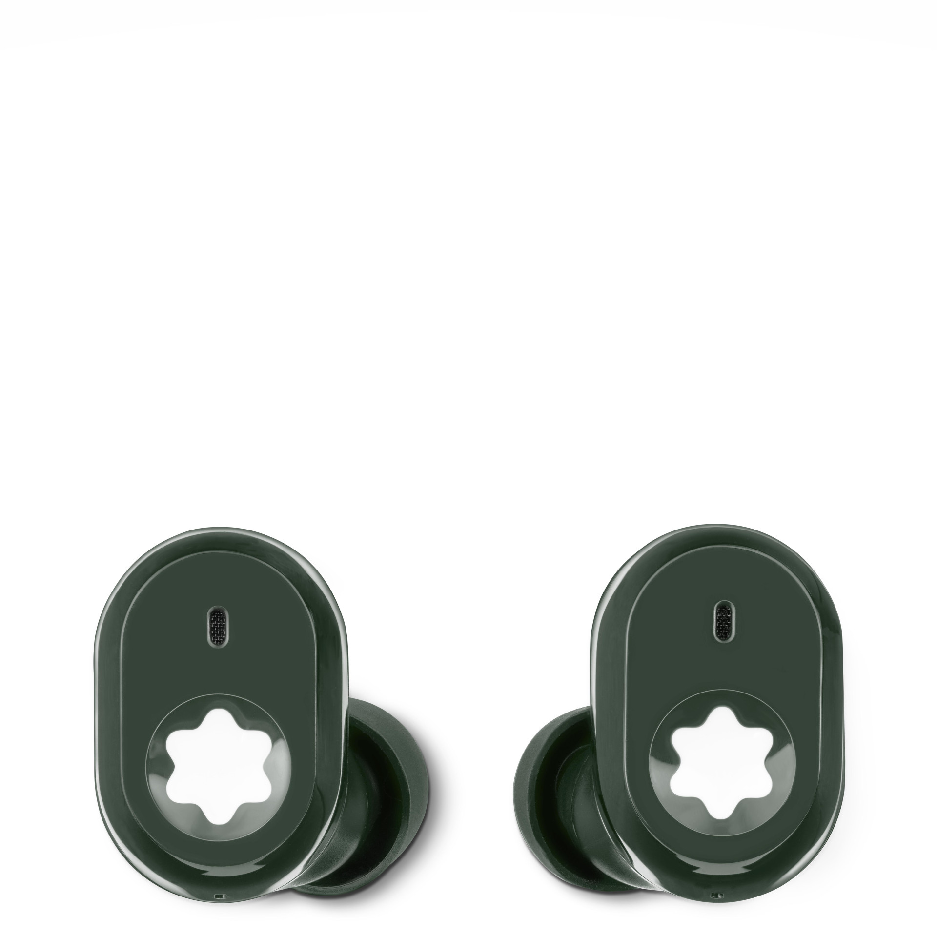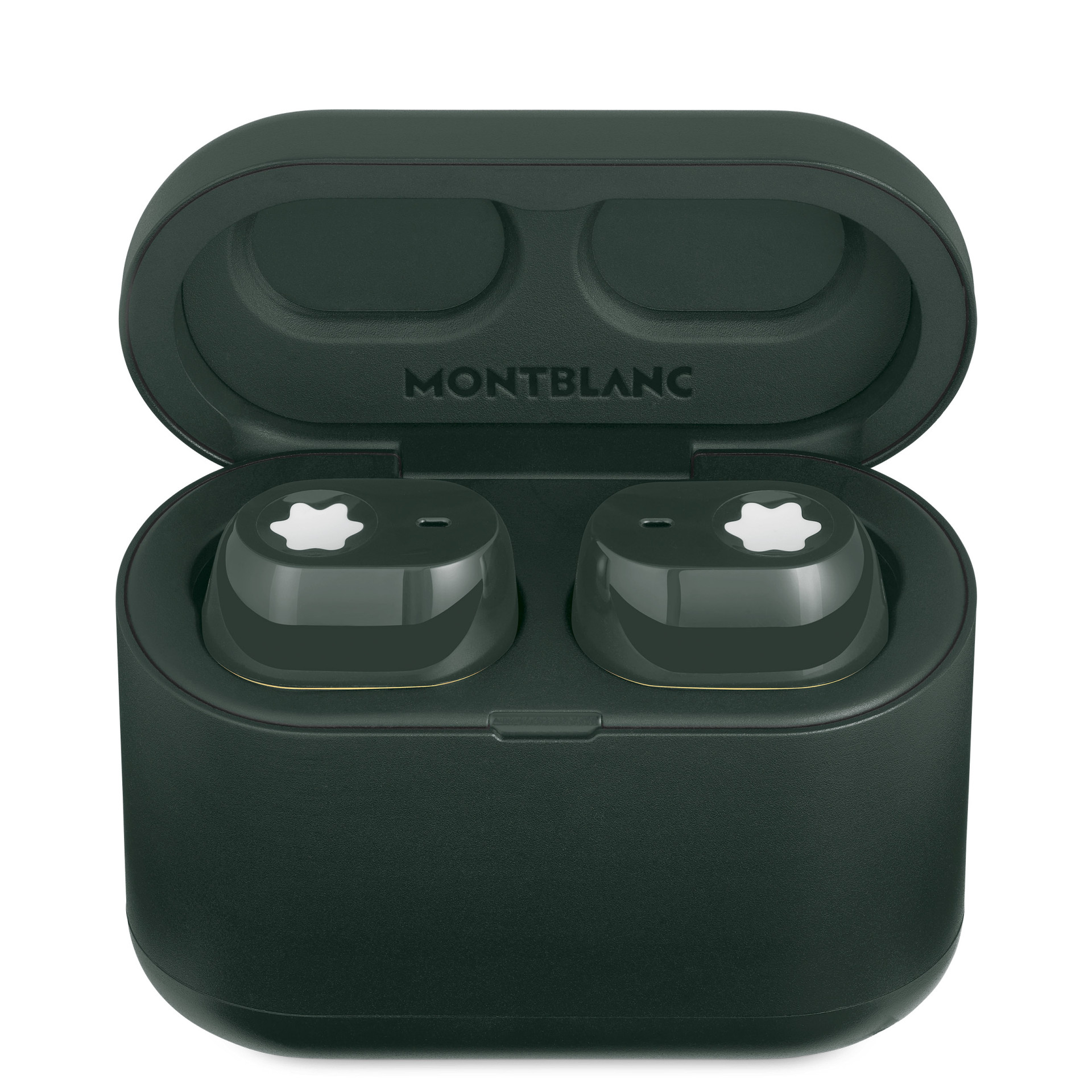 MONTBLANC MTB 03無線藍芽入耳式耳機除了經典的黑色,今年春夏推出從品牌典藏汲取靈感,仿照早期大師傑作系列書寫工具的色彩—英倫綠,向這個百年書寫傳奇致敬。耳機的設計細節取材自大師傑作系列,將永恆經典的優雅設計與尖端技術融為一體,採用輕質樹脂製作,並飾有MONTBLANC標誌。