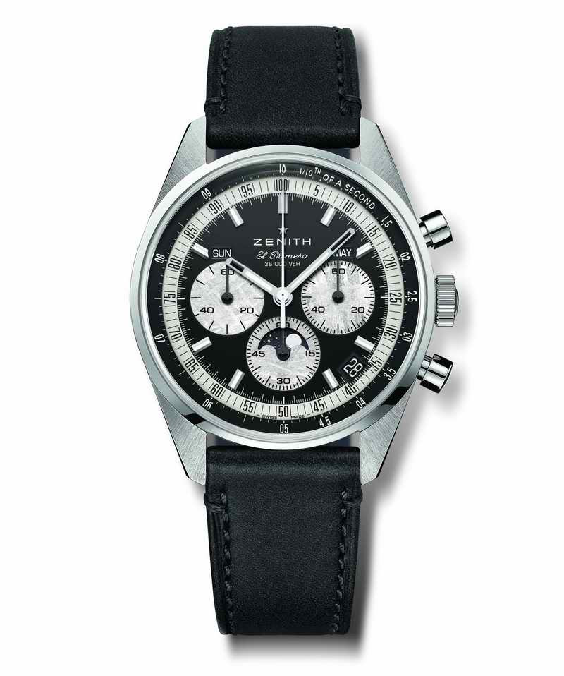 此限量版腕錶延續了初代El Primero錶款的卓越設計和多樣風格,將真力時現代、奢華及精美的外觀設計展露無遺。腕錶採用寬38毫米、厚14毫米的精鋼錶殼,錶盤覆以凸面弧形透明藍寶石鏡面,不同於El Primero A386古董腕錶所採用的壓克力鏡面。且最大特色是以特製的黑色月相盤和鍍銠時標搭配,在CHRONOMASTER Original全日曆月相腕錶系列中獨樹一幟。此外,此款腕錶亦將傳統的鍍金計時指針更換成白色,在經典設計之中展現時尚。此限量款腕錶配有精鋼錶鏈與皮革錶帶,營造出現代高性能運動腕錶的外觀和質感。