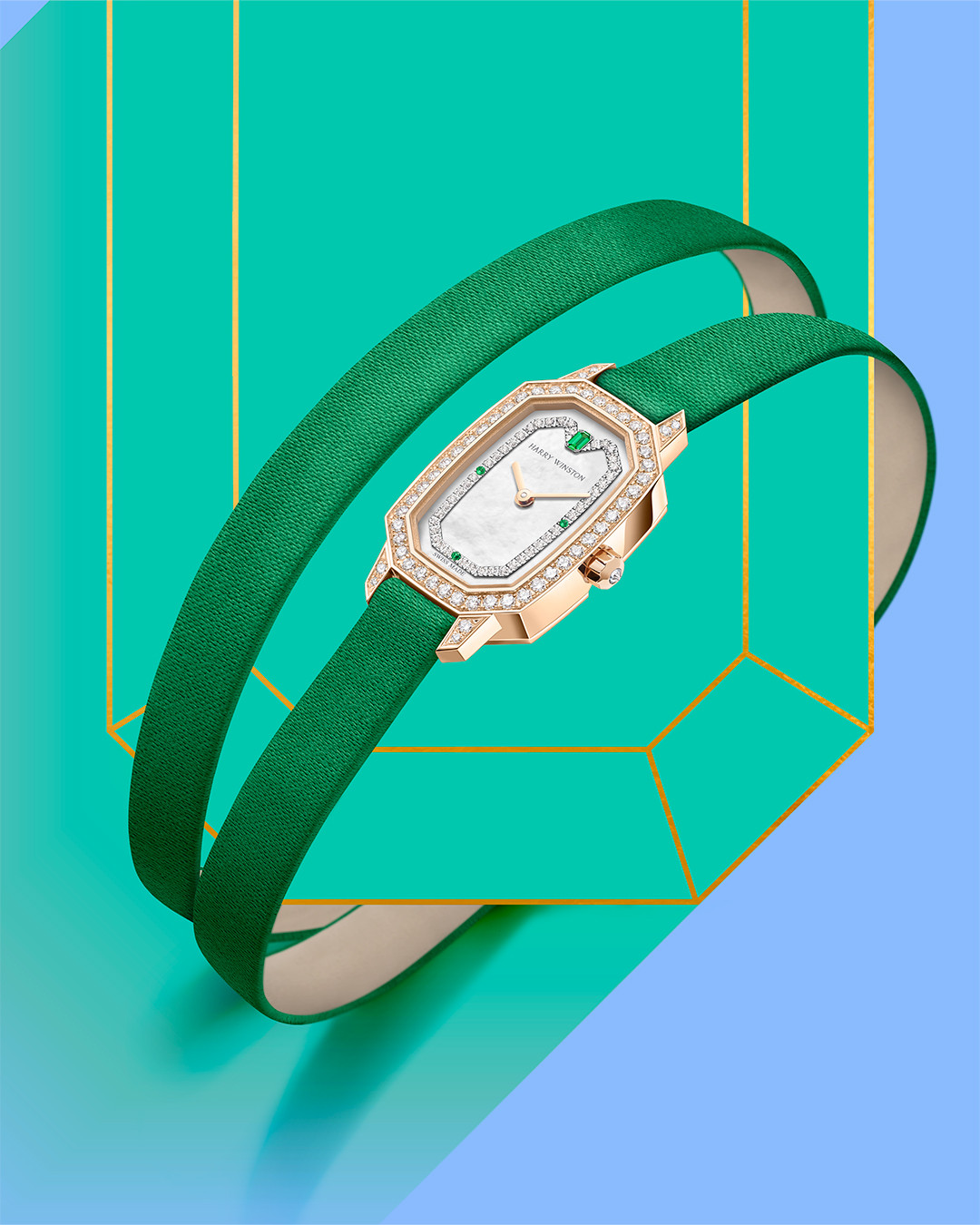 海瑞溫斯頓印記Emerald系列腕錶 鮮豔糖果粉及明亮祖母綠