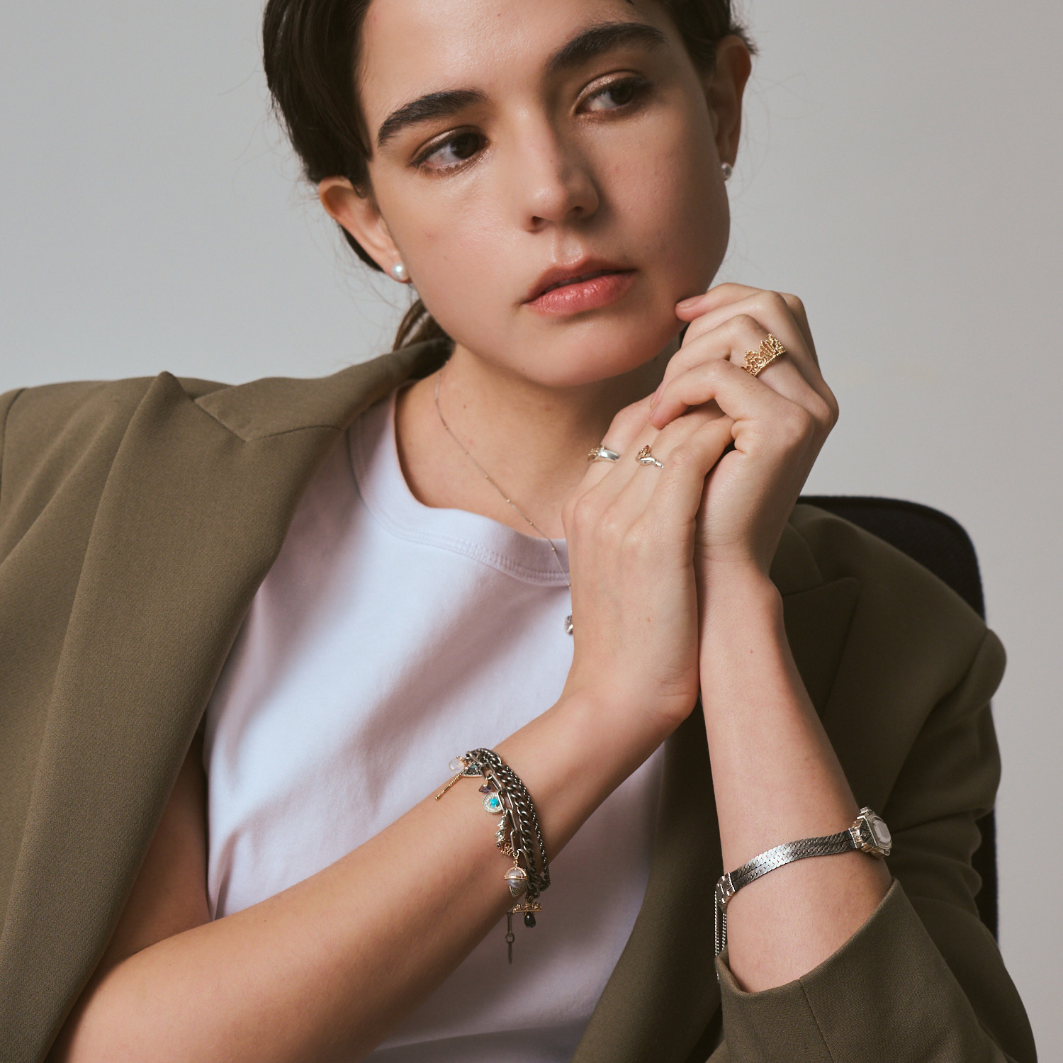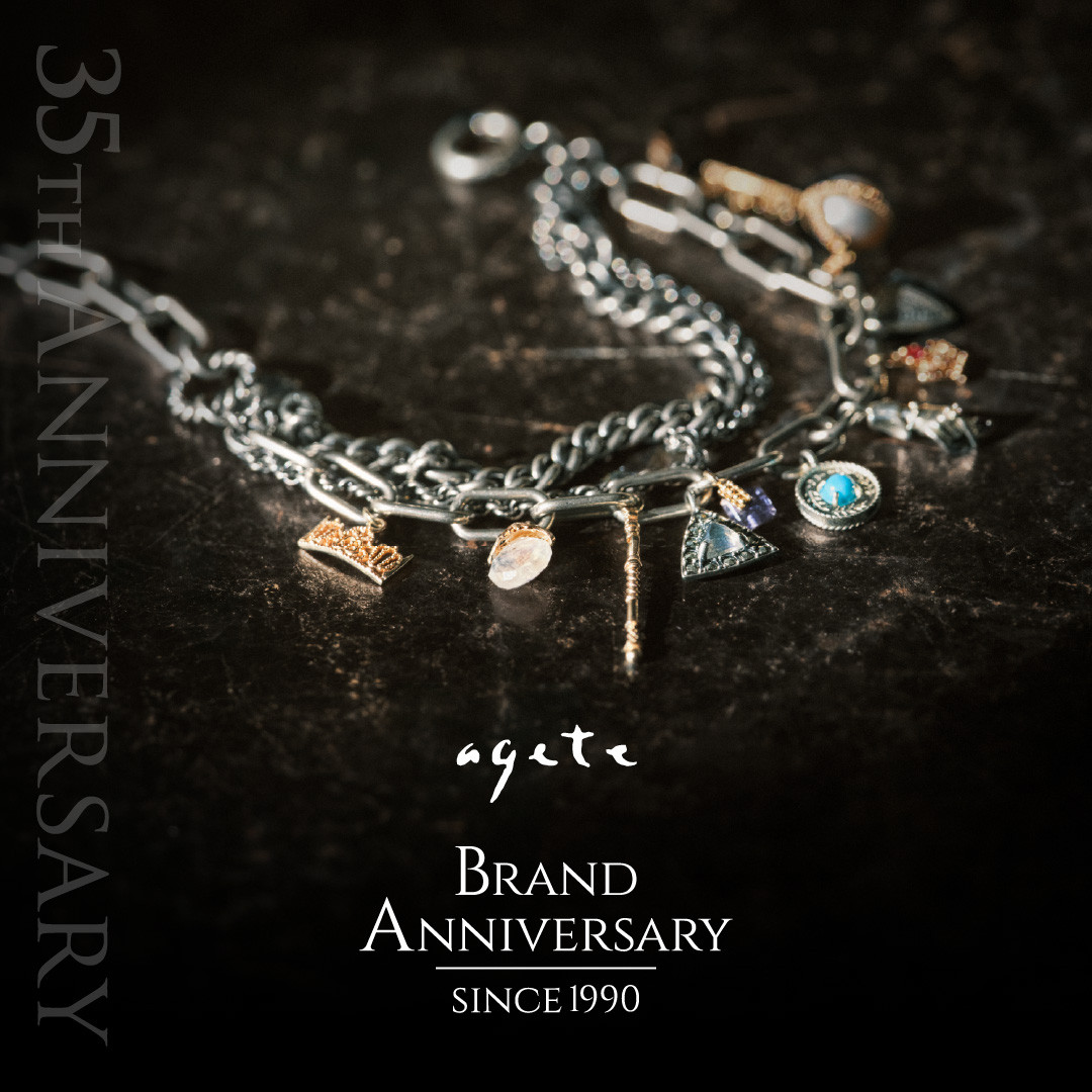 以 12 枚獨立墜飾構成,靈感源自英國古董珠寶,展現低調卻華麗的復古魅力。每一枚墜飾皆精心設計,不僅致敬品牌的歷史時刻,更融入代表 agete 四大元素──「沙」、「海」、「天空」與「祈願」,將細膩工藝與豐富意涵凝聚於腕間,化作歲月中最獨特的紀念。