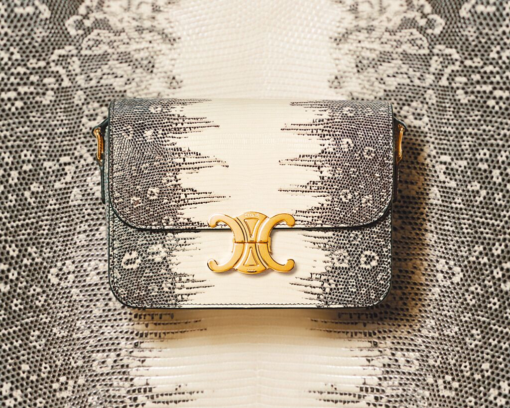 這份經典的魅力,也恰與CELINE創辦人Celine Vipiana於1970年代推出「Triomphe」標誌性搭扣的靈感來源不謀而合。當時,她駕車行經巴黎凱旋門附近,不巧遇上車輛拋錨,等待救援時,無意間注意到凱旋門周邊的鎖鍊設計——這特殊的圖騰激發了她設計出CELINE經典雙C標誌的靈感,也成為她與CELINE躍上世界舞台的幸運星。直到2018年,創意總監Hedi Slimane重新詮釋這一經典符碼,使其以嶄新姿態再次成為CELINE最具代表性的視覺象徵。