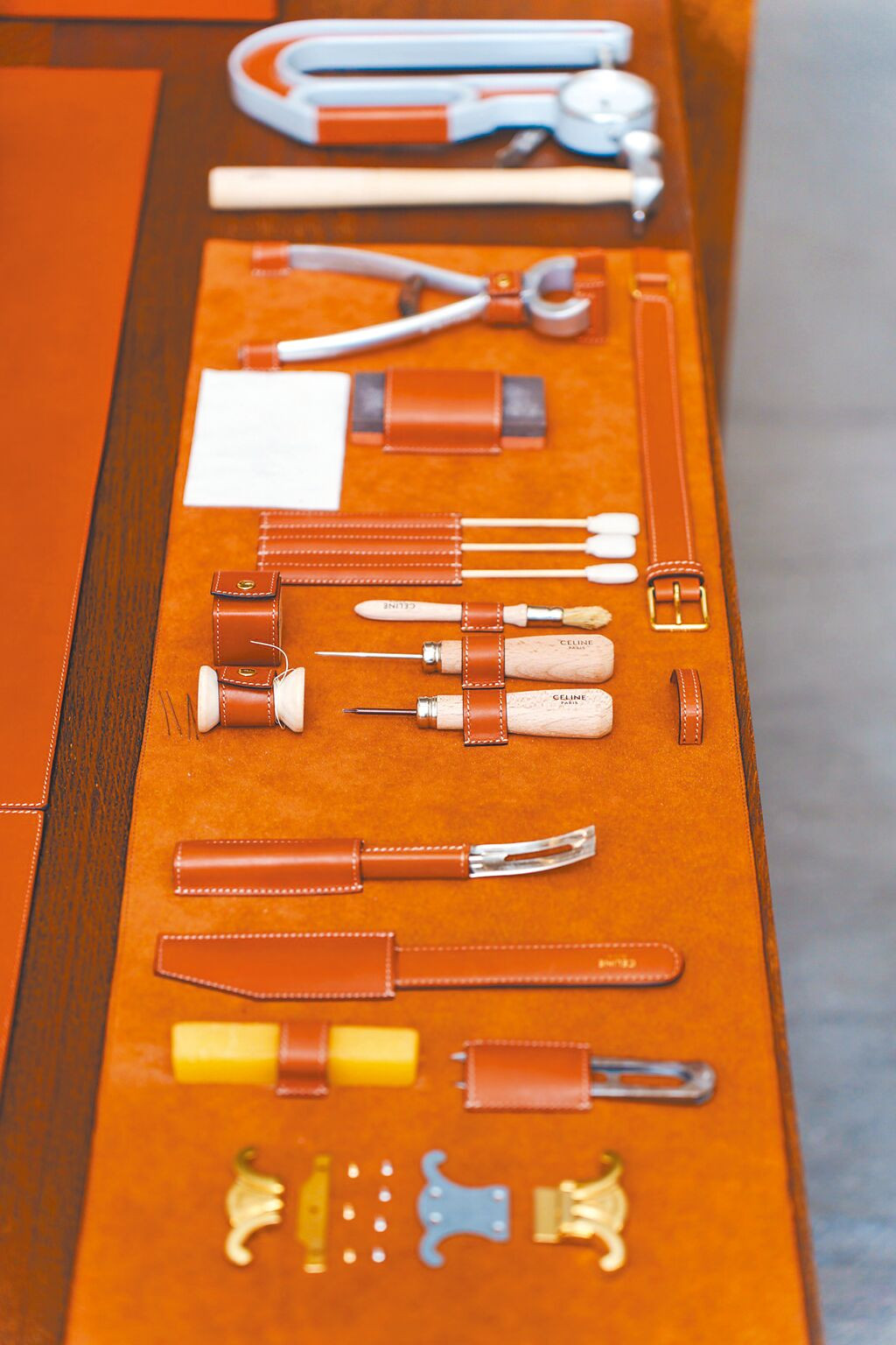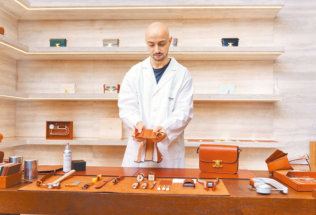 CELINE由義大利皮具工坊請來皮革匠人,為台灣消費者展示CELINE打造皮革包款的工藝流程。(吳松翰攝)