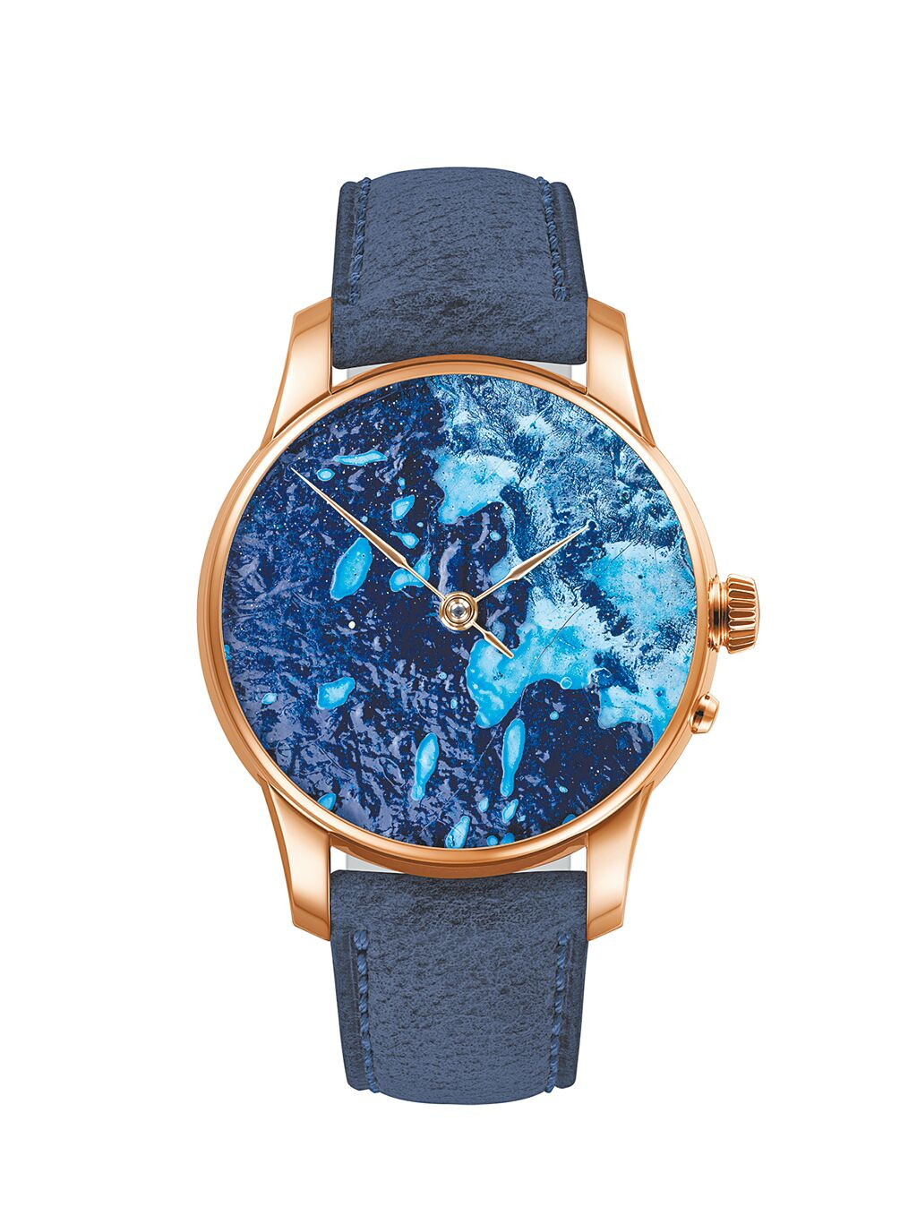 熱愛藝術的Christine Hutter也分享,近期她與杜塞道夫藝術家馬克斯弗林托普(Max Frintrop)攜手合作,將畫家工作室地板歷經10年累積的油畫顏料刮下來,並打磨成表盤,獨特濃厚的釉彩有著獨特沉積層次的色調,每件都是獨一無二之作,限量16只,同樣一上市就被搶購,如今只剩下兩只。