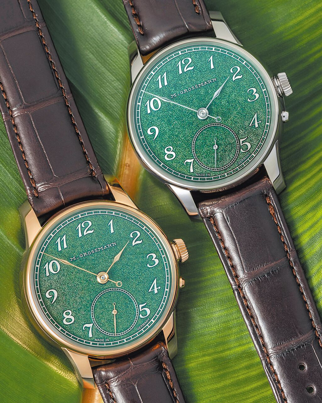 Moritz Grossmann以表盤工藝著稱,圖為「抖雕」工藝表盤Tremblage Green腕表。(瑞博品提供)