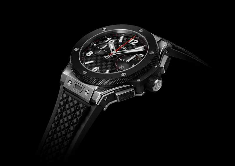 新款 Big Bang 20週年UNICO鈦金陶瓷計時碼錶延續系列經典的多層次結構語彙,43mm 鈦金屬錶殼搭配黑色陶瓷錶圈,配上碳纖維感浮雕錶盤與紅色計時刻度,夜光塗層確保全天候清晰可讀性。整體設計呼應原創 Big Bang 精神,同時進一步強化運動與潮流語境的融合,展現材質美學與功能實用的完美平衡。