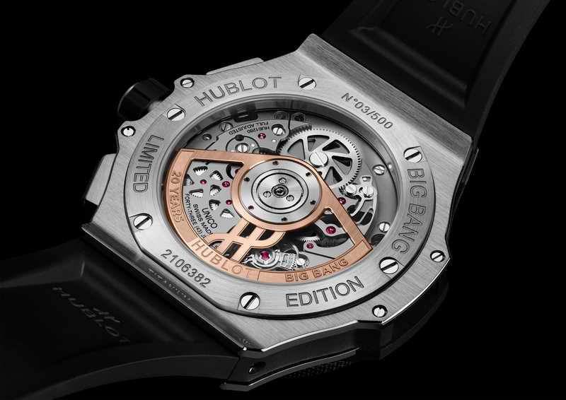 作為宇舶的代表作,Big Bang系列自問世以來便憑藉其搶眼外型深受潮流鐘錶藏家喜愛。今年推出的 20 週年限量版,延續經典設計語彙,錶款搭載品牌自製 HUB1280 UNICO 自動上鍊飛返計時機芯,具備高精準的計時反應與流暢的操作手感,支援飛返功能,特別適合高節奏、多段計時需求的運動場景。自動盤採金質鏤空設計,鐫刻專屬 20 週年標誌,兼具紀念意義與機械美感,同時進化為一枚更具實戰機能的高階運動時計。