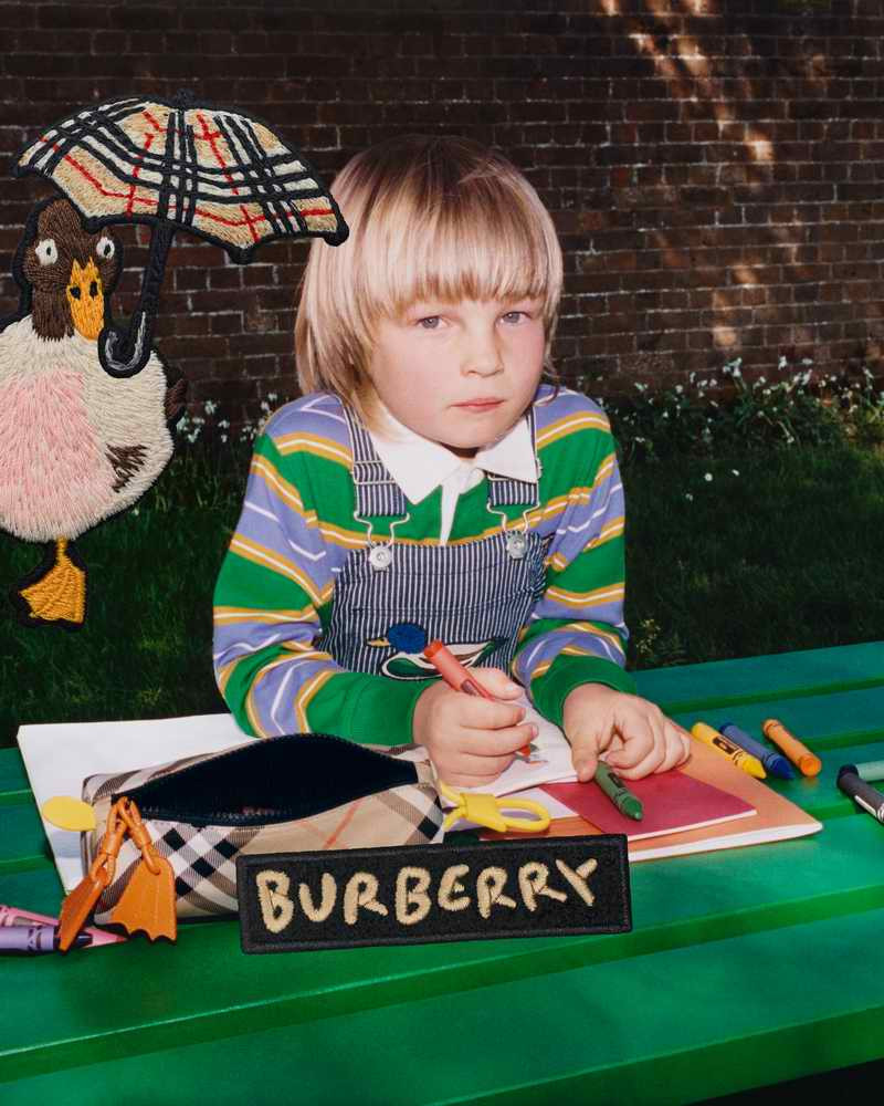 Burberry於2025年冬季童裝形象視覺中,推出英倫開學季全新系列。本系列將童裝造型從遊樂場一路時髦地走進教室,巧妙融入品牌經典元素並以迷你版本再現,搭配趣味十足的全新印花,演繹別具風格的開學造型。
