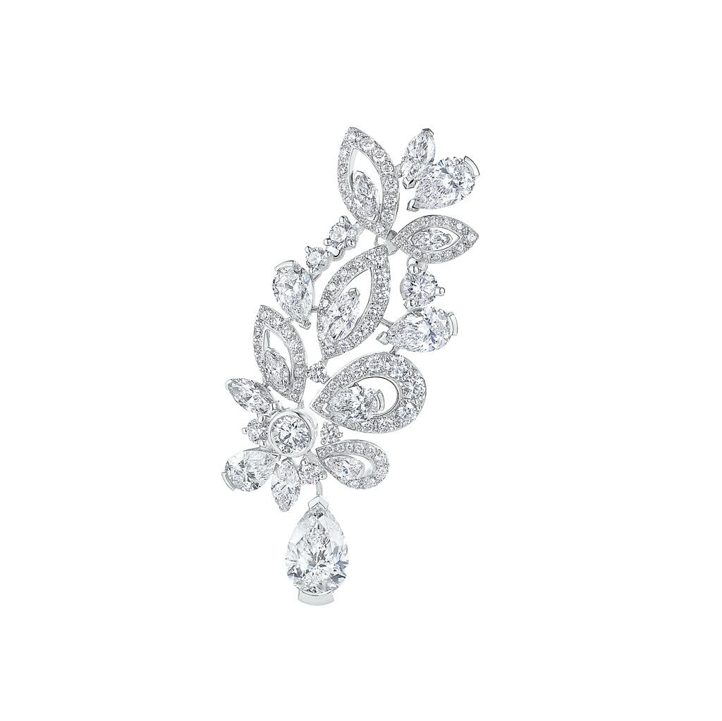 Jacaranda Bloom珠寶是以南非常見的藍花楹樹為設計靈感,使用梨形、欖尖形和圓形明亮式切割的白鑽,構成鑽石花簇,可隨佩戴者的一顰一笑搖曳生姿,重現春天藍花楹樹盛開時滿樹花團錦簇的美景,作品採用大明火琺瑯技術,詮釋藍花楹花瓣層次遞進的漸變紫色調。