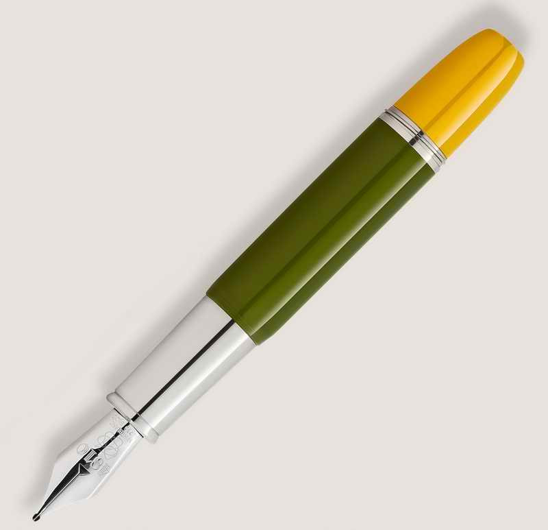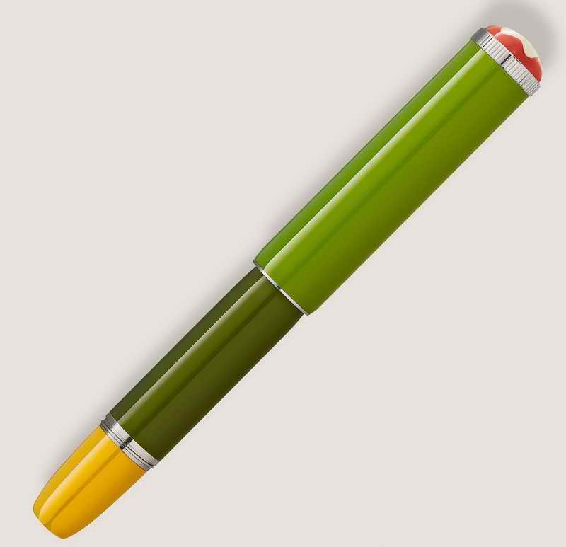 「SCHREIBERLING」限量版1969來自Wes Anderson重新構想的MONTBLANC世界,以迷你造型融合了經典設計與精湛工藝。這款書寫工具披上鮮豔的綠色與黃色亮漆隆重登場,綴以鍍鉑金鑲飾。其設計是對「Baby」書寫工具的全新詮釋,借鑒了品牌早期經典書寫工具的珊瑚色筆蓋頂端設計,同樣在頂端以珊瑚色珍貴樹脂環繞六角白星標誌。此筆款僅限量發行1,969支,以紀念這位電影製作人的出生年份。