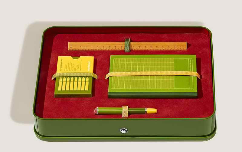 「SCHREIBERLING」書寫工具是是限量套組的一部分,以帶有珊瑚色內襯的綠色錫盒包裝,靈感來自Wes Anderson電影中常見的錫製工具箱。套組除了鋼筆外,也包括一本筆記本、一把直尺和一支綠色卡式墨水管,帶來完美的書寫體驗。就像MONTBLANC所有的書寫工具一樣,「SCHREIBERLING」不僅外表美觀,還講述了更深層次的故事,也好比Wes Anderson的作品遠不止於純粹的視覺呈現,而是透過細膩雕琢的外表,訴說一個精心構思的故事。